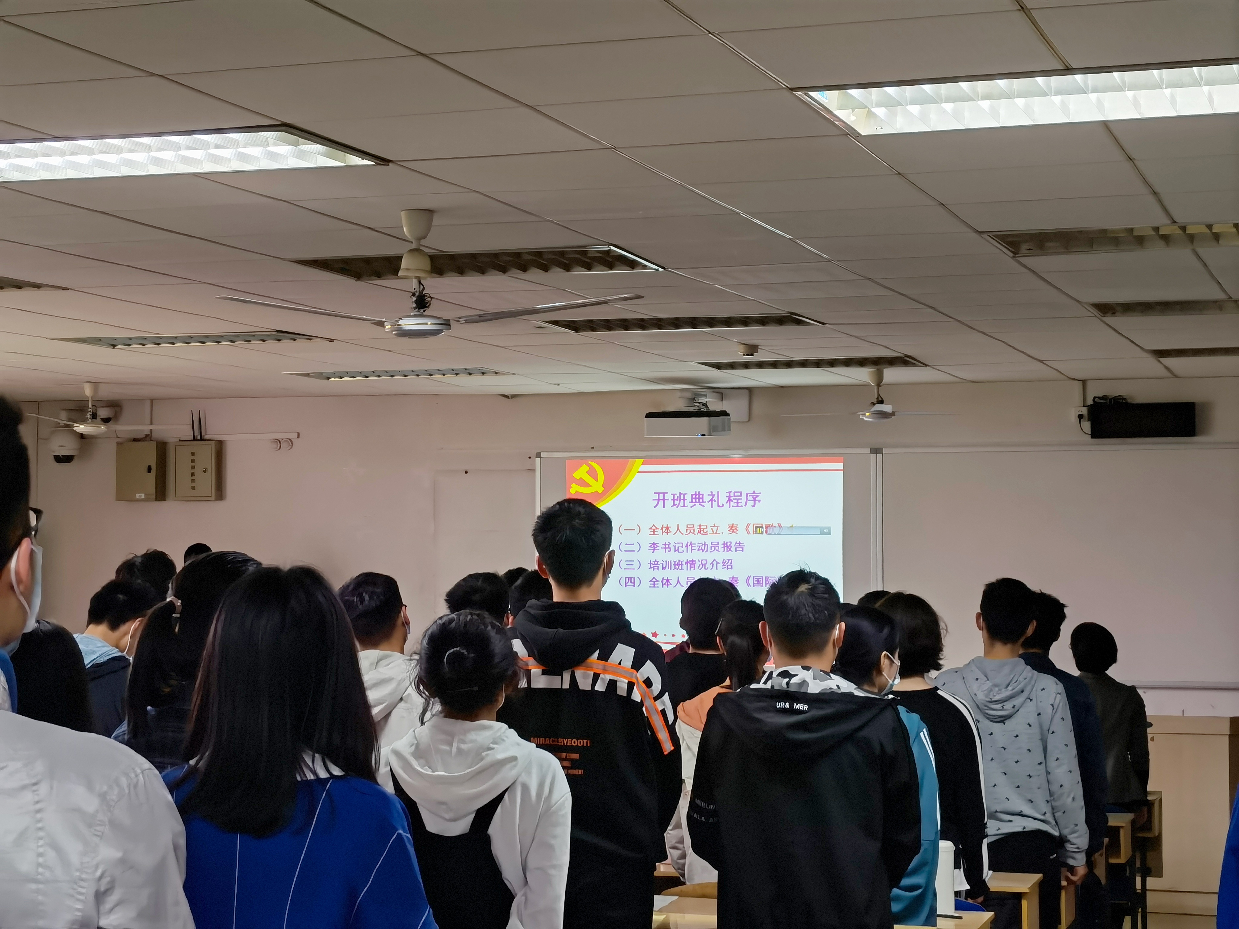 典礼最后在激昂的《国际歌》歌声中落下帷幕。本次开班典礼取得了圆满成功,对全体学员给出了指导性的建议,有力引导了学员们以党员的标准严格要求自己。相信经过开班典礼,在今后的培训学习过程中,所有学员都能严格要求自己,认真参与本次培训,争取早日成为一名中共党员。