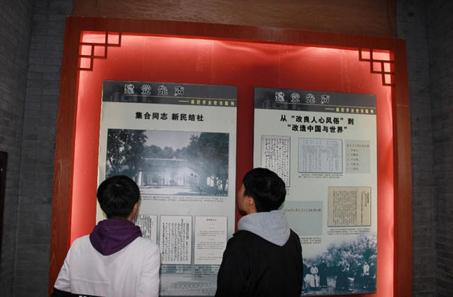 当同学们了解到蔡和森一家人在每月只有八元钱的情况下仍然致力于人们的思想解放时,不禁肃然起敬。紧接着,我们进入陈列馆参观。里面清晰的记录了新民学会的成长过程,包括毛主席青年时的铮铮誓言和对当时湖南的各界仁人志士救国救民英雄行为的记载。依照新民学会的发展历程,我们分别参观了“志同道合组建进步团体”、“向外发展寻求革命真理”、“立足国内创造新的环境”、“完成使命迎接新的曙光”四个展厅,认真的观看着陈列室中的图像资料,详细了解了学会曲折的发展历程,为自己生活在如此繁荣富强的祖国深感自豪与骄傲。
