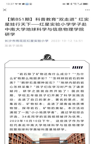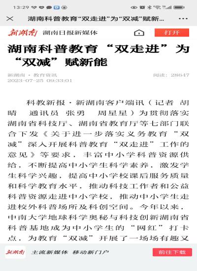 地球科学奥秘与科技创新(湖南省科普基地成为中小学生的“网红”打卡点,为教育“双减”开展了一场场有趣又有料的科普教育‘加法’”。