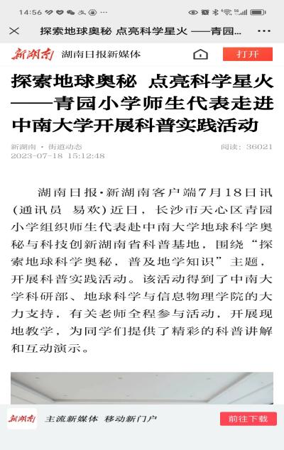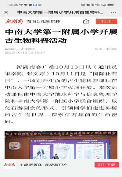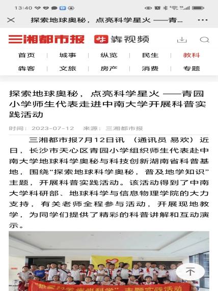 第一附小送科普上门。湖南日报新媒体“新湖南客户端”7月25日这样报道我们基地,“今年以来,欧飞