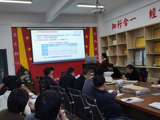 -基于课堂教学评价指标解读的督导评教反馈交流》报告,高度评价我院:学院领导非常重视本科教学和青年教师的培养,身体力行。广大教师爱岗敬业,认真投入,本科教学效果优良率高。介绍了我院值得推广的典型事例,并指出了值得关注和改进之处。并为我们解读了新版(2020)课堂教学评价指标。