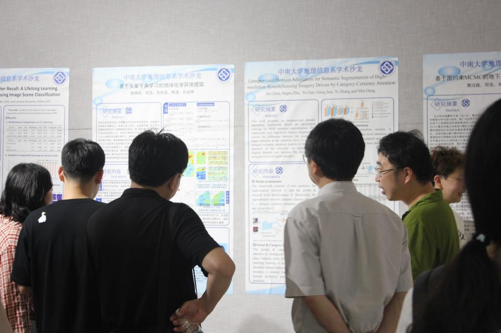 活动中,50余项我院地理信息系博士、硕士研究生、本科生的优秀学术研究成果通过海报的形式展出,涵盖内容涉及地理信息科学、大地测量学与测量工程、摄影测量与遥感、地质资源与地质工程等相关专业学科。到场师生通过阅读海报,与作者及其他老师同学交流,碰撞观点,积极思考和提问,了解我院地理信息系科研现状,探寻专业发展的前沿方向及应用领域。