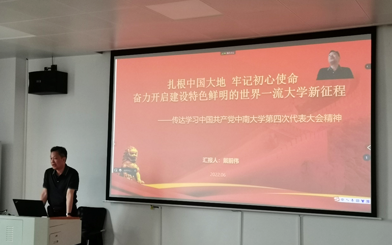 2022 年6月10日下午,戴前伟院长在地科楼338通过线上线下相结合的方式为应用地球物理系教工支部、应用地球物理系博士生支部及地信院本科毕业生党员讲授了题为《扎根中国大地 牢记初心使命 奋力开启建设特色鲜明的世界一流大学新征程》的专题党课,传达学习了中国共产党欧飞