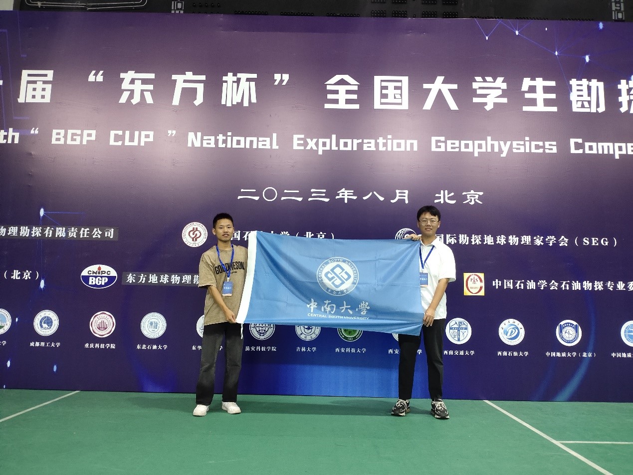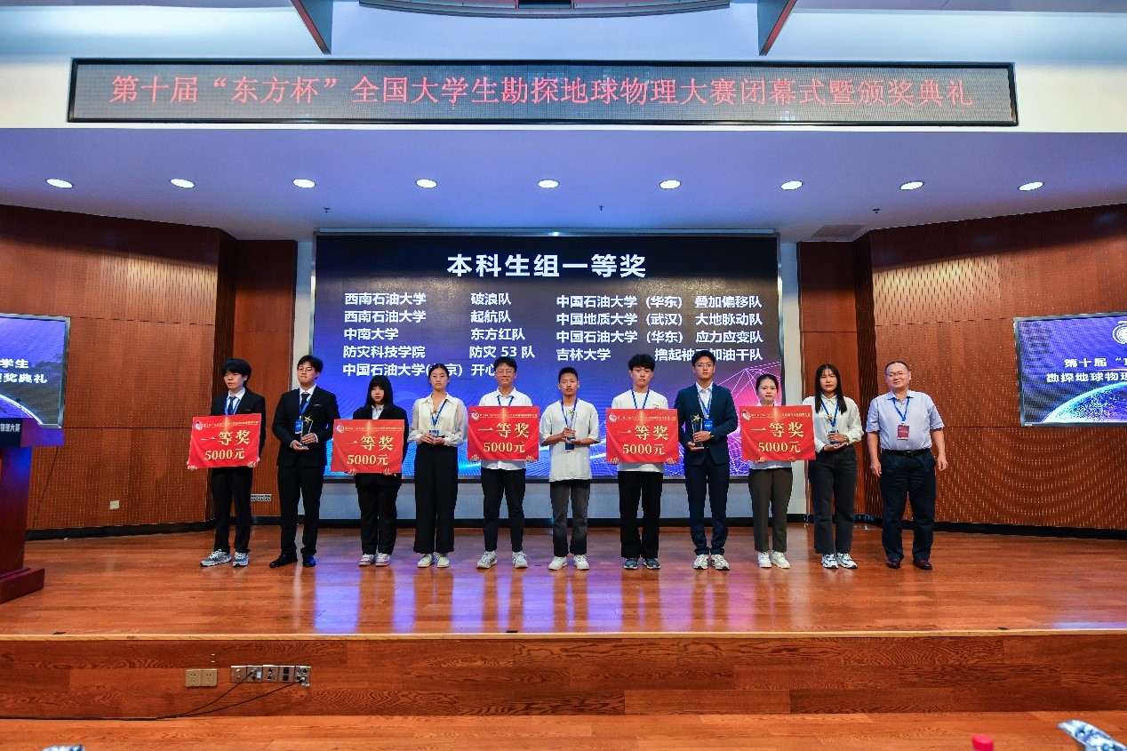 8月20-25日,由中国石油集团东方地球物理公司、SEG(Society of Exploration Geophysicists)、中国石油学会物探专业委员会、中国石油大学(北京)共同主办的第十届“东方杯”全国大学生勘探地球物理大赛决赛在中国石油大学(北京)举行。本次大赛共有来自全国22所高校的579支队伍报名参赛,经初赛评选,共有60支队伍、120名参赛选手入围决赛。我院应用地球物理系付润泽、黄永刚两位同学组成的“东方红队”成功进入决赛,经过笔试、数据处理、剖面评比及答辩等环节的激烈角逐,两位同学脱颖而出,荣获本科生组一等奖,张大洲老师荣获“优秀指导教师奖”,这是欧飞
