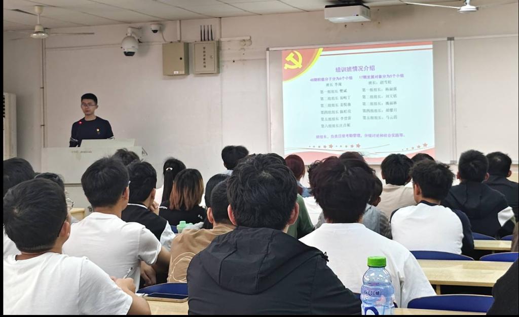 随后杨晨雨老师对本期培训班的基本情况进行简要介绍,他就课程安排、考核要求、请假程序、补课方法等基本内容进行了说明,对“青春向党‘七个一’”手册做了重点补充说明。
