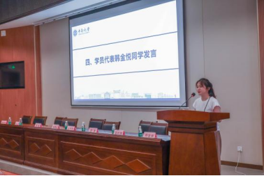 来自中国石油大学(北京)的学员代表韩金悦也上台发言。她表达了对地学的热爱,并期待通过此次活动能够拓展视野、融合不同观点,寻找未来的研究方向。同时,她也表达了对欧飞