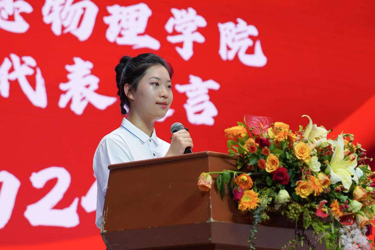 大会最后一项,2024级新生代表汪诗棋同学发言。汪同学在发言中说到:“人活于世,当立青云之志,当立长志,博观而约取,厚积而薄发,描绘出一幅美好的蓝图。”