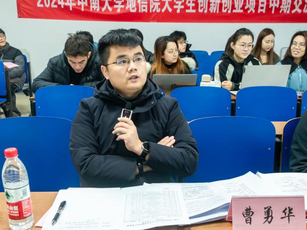 2024年12月18日下午,地信院大学生创新创业项目中期检查答辩交流会于新校区A座教学楼成功举行。本次交流会旨在加强学生相互交流和学习,侧重考察项目的创新点、阶段进展和团队分工情况。交流会共有55个项目团队参加,设四个分会场,分别于A座113、114、123、124四个教室展开。答辩邀请了我院彭程里、余文坤(分会场一),蔡昌盛、王威(分会场二),熊伊曲、曹勇华(分会场三),陈科平、郭振威(分会场四)8位老师担任评审专家。