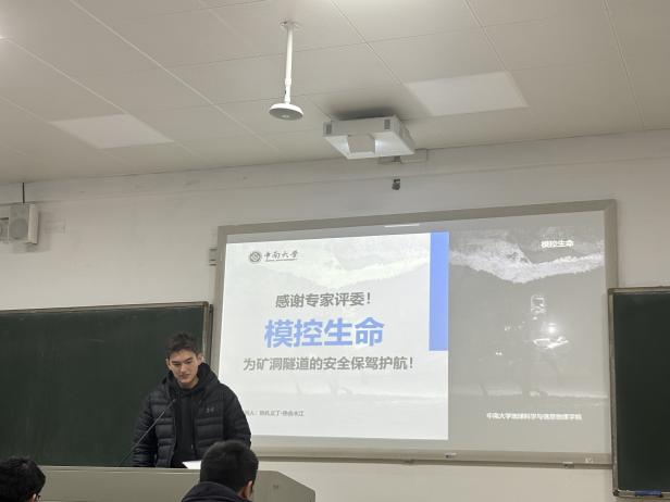 随后,55个项目团队依次进行了精彩的成果展示。我院创新创业团队的项目主题涵盖广泛、创意十足,如有的团队深耕于遥感高光谱技术与中药电商平台的融合领域,全力推动家乡中药产业振兴;有的团队致力于矿洞仿生四足机器人系统的研发,助力智慧矿山建设;有的团队致力于利用机器学习和多元统计理论探寻湘中盆地金锑钨矿床成因。总体上看,同学们都在积极地运用所学知识解决各个领域的问题,利用智能化、信息化技术推进社会的进步。