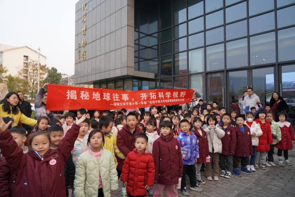 湖南大学子弟小学一行先后参观了地质博物馆的“地球奥秘厅”“古生物地史厅”“珍宝观赏厅”等几个展厅。面对众多各有特色的藏品,小朋友们都激动不已,部分家长也对我院地质博物馆内的藏品之丰富精美表示感叹。