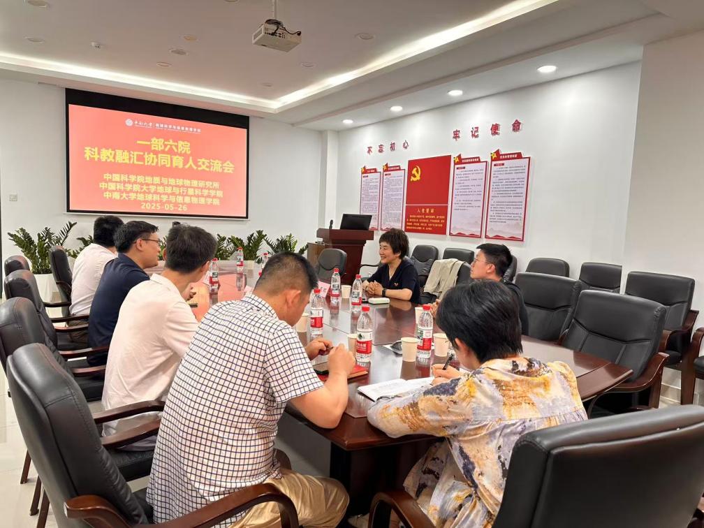 2025年5月26日下午,我院与中国科学院大学地球与行星科学学院、中国科学院地质与地球物理研究所在地球科学楼214和424联合举行“一部六院”科教融汇协同育人交流会。中国科学院地质与地球物理研究所教育处处长宋玉环、中国科学院大学地球与行星科学学院党委副书记于立业、中国科学院地质与地球物理研究所张之涵博士,地信院院长李志伟、副院长谭静强、学院各系教师代表王文卉、于淼、张大洲、余文坤、吴冬宇等共聚一堂,围绕科教协同育人展开深入研讨。
