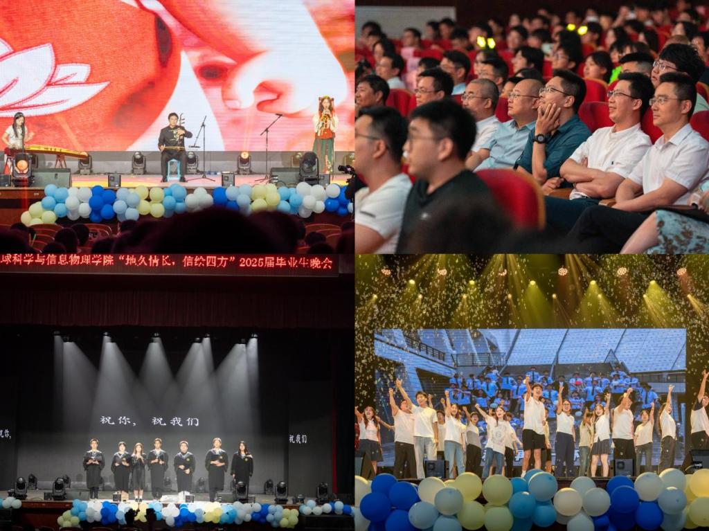 6月3日晚,地信院“地久情长,信绘四方”2025届毕业生晚会于麓南校区礼堂顺利举办。学院党委书记邵拥军,院长李志伟,党委副书记刘浩,副院长冯德山、胡俊、杨金豹,各系主任、班导师、学工办辅导员及学院2025届全体毕业生参加。