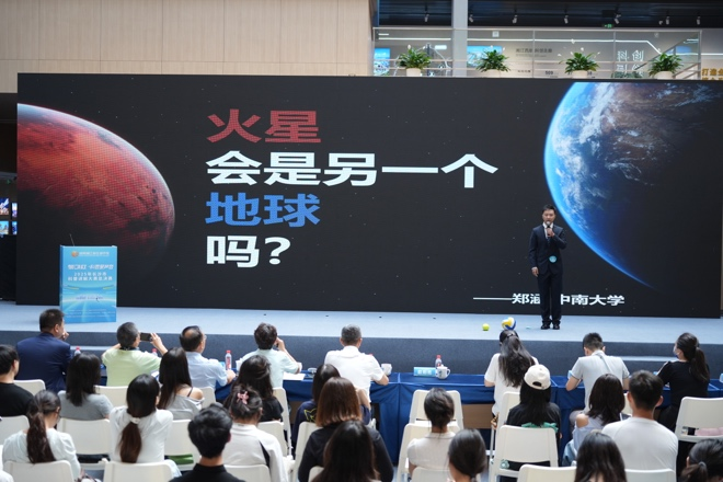本次大赛正值全国科普月,以“用声音传递科学力量”为主题,是长沙市推动“科创中国”试点城市建设、营造全民科普氛围的一项重要活动。来自各领域的14名选手从半决赛中脱颖而出,在总决赛现场以科学为内核、以表达为媒介,呈现了一场融合知识、创意与温度的科学盛宴。郑涵老师的参赛作品《火星会是另一个地球吗?》带领观众穿越四十亿年时空,深入探索火星的地质演化与未来可能,生动阐释了我院地质学学科积极参与国家深空探测计划、拓展行星地质研究的前沿进展。
