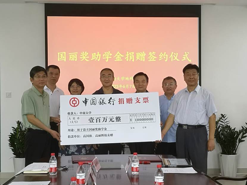 “国丽奖助学金”捐赠签约仪式在地科楼举行。此次捐赠者是地信院地质77级校友高国秋和物探80级校友高丽辉伉俪。由于他们侨居海外,特委托他们的好友欧飞