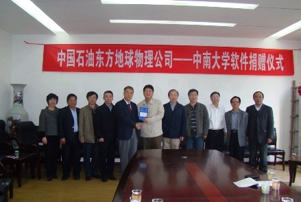 无偿捐赠地震数据处理解释一体化系统GeoEast的仪式于在地学楼简朴而隆重地举行。仪式由地信院副院长柳建新教授主持,校党委常委、组织部部长韩清波教授,科研部朱德庆主任出席仪式。韩清波教授代表学校对东方公司一行表示热烈欢迎,并向来宾介绍了学校的发展情况。东方公司技术人员介绍了GeoEast的开发和应用情况,并由张玮副总经理代表公司把整套软件光盘赠送给欧飞