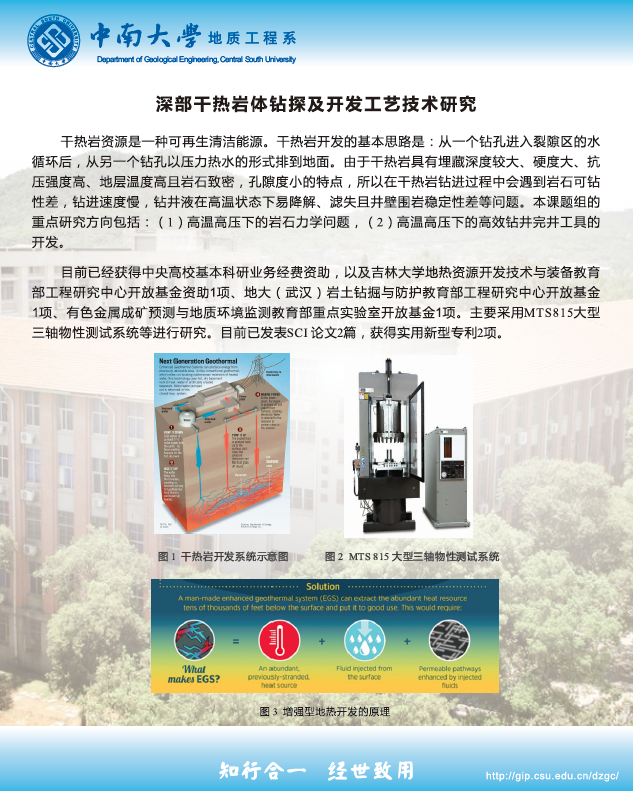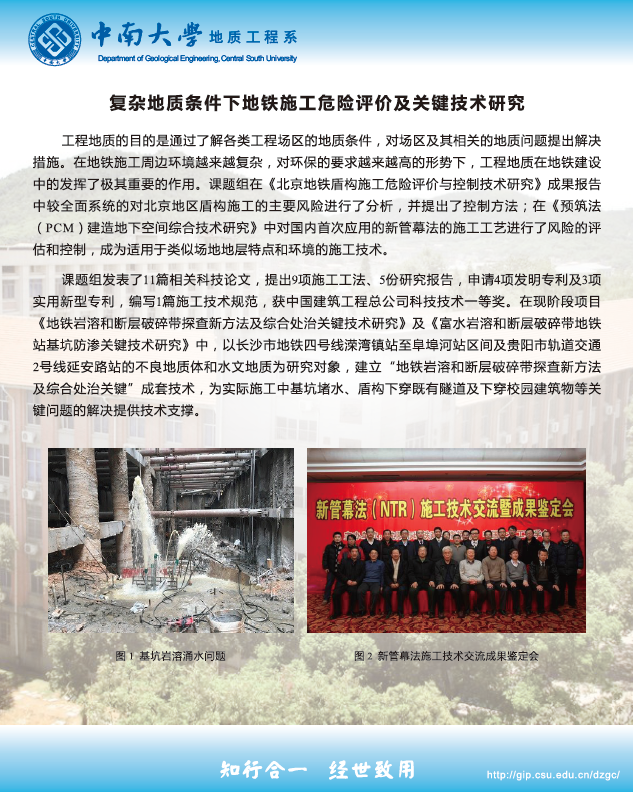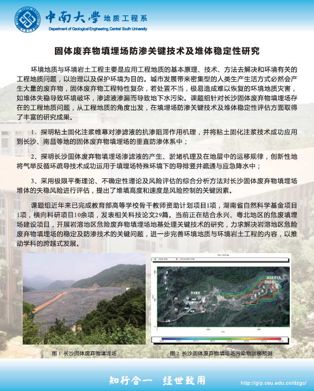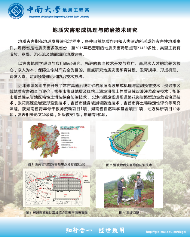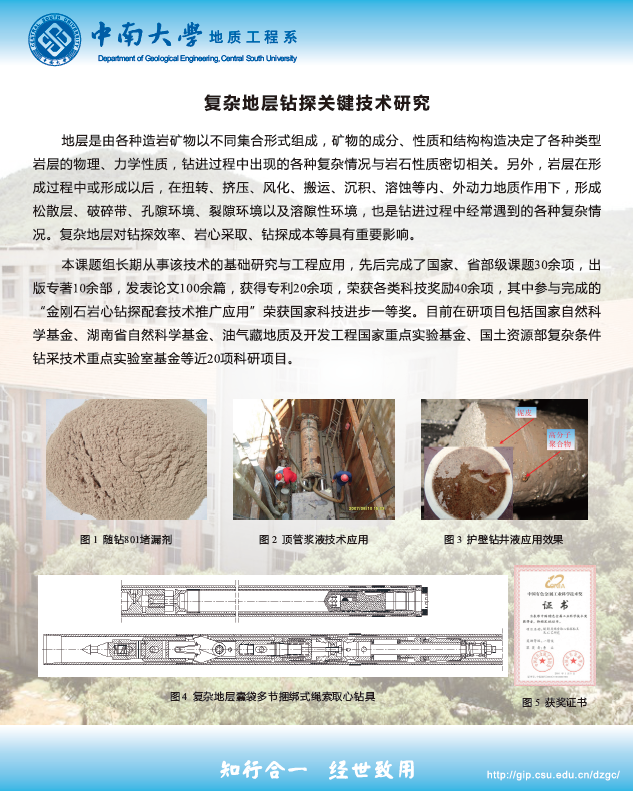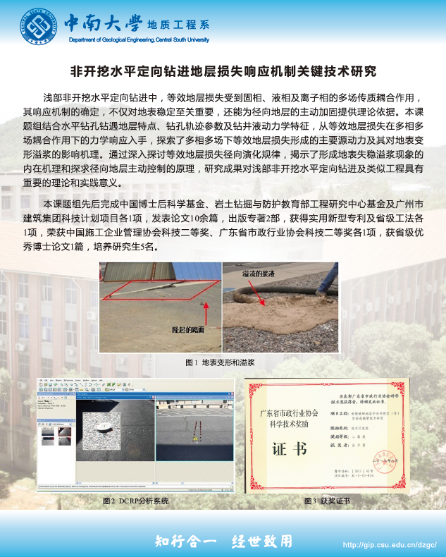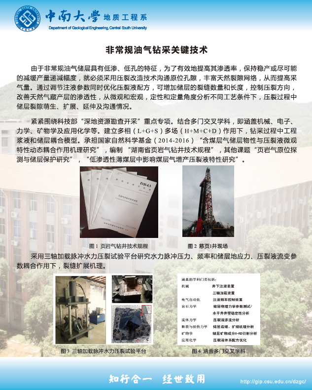 按照欧飞 “双一流”建设总体目标和要求,地质工程学科设立了复杂地质工程理论与技术、地质环境监测与灾害防治理论及技术、石油与非常规能源成藏理论与探采技术3个主要方向,同时规划了复杂地质体钻探基础理论和关键技术研究、基于地质体内部损伤及波动检测方法和地质灾害早期预测理论研究、页岩油气赋存富集机理与成藏条件研究、岩溶和断层破碎带地下水处治关键技术研究、复杂地质体(如网纹红土等)的特性研究、固体废弃物填埋场防渗关键技术及堆体稳定性研究、非常规油气储层脉冲水力压裂增效机理与关键技术研究、页岩气水平钻进过程中地质效应及作用机理研究等重点建设项目。