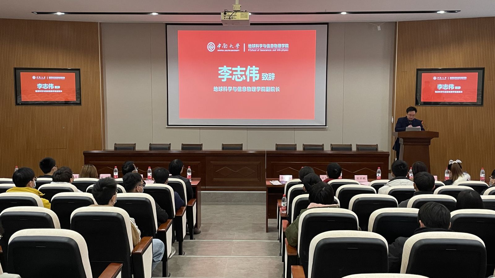 会议伊始,李志伟副院长致辞。他首先向全体获奖学生表示祝贺,同时向创立经纬-探路者奖学金的两位校友以及各位关注学院发展的校友们表示衷心的感谢。随后,他讲述了经纬-探路者奖学金的设立过程,迄今为止已有一百二十余名学生获得奖励和资助。最后,李志伟副院长对全体同学提出期许,殷切希望大家能够常怀感恩之心,传承中南精神,在珍惜荣誉的同时,也要戒骄戒躁、再接再厉,争取百尺竿头更进一步,脚踏实地,才能眺望远方。