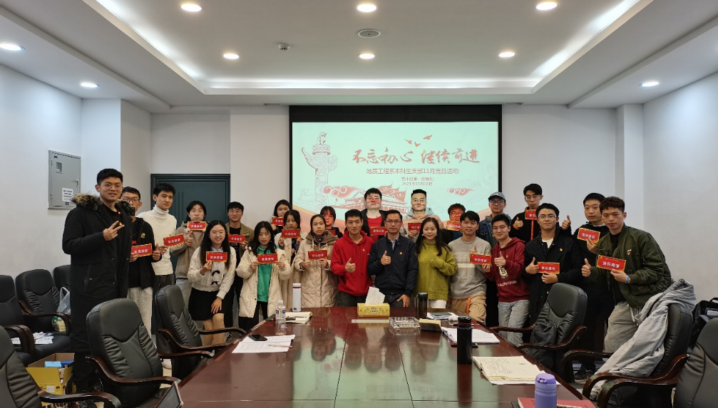 11月28日晚上18:30,地质工程系本科生支部11月党日活动暨第13期发展对象接收大会在地科楼214顺利召开,支部书记杨通田、支部全体成员及第13期五位发展对象参加。会议由王志和李昱熹同志主持。