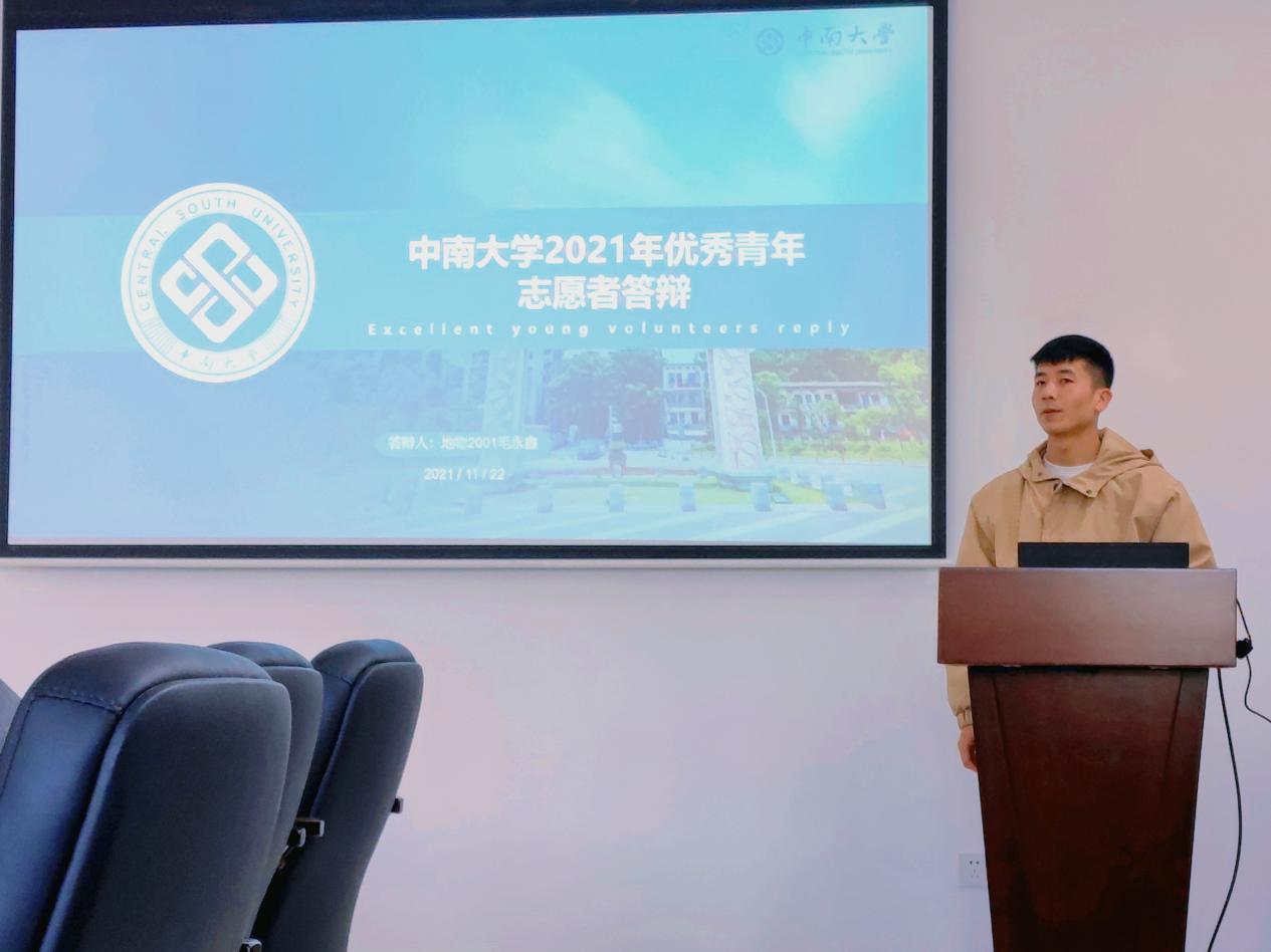 第二位答辩人是来自地物2001班的毛永鑫,现担任地物2001班班长、地信院新媒体运营部副部长及院学工办助理。身兼数职,志愿事业从未落下,除了参加格桑花西部助学、欧飞