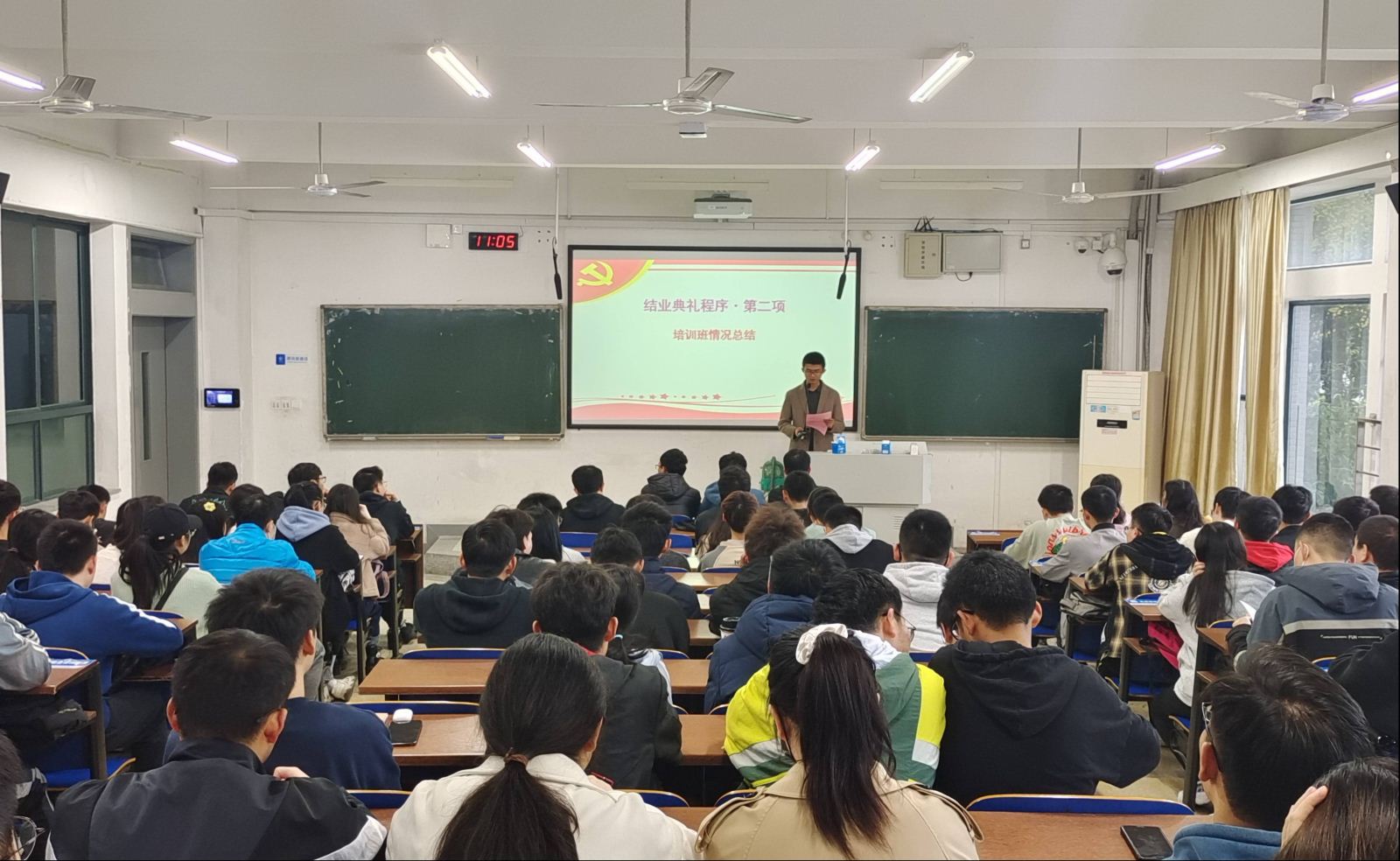 总结完毕后,学员代表徐倩进行发言,与其他学员分享参加培训的心得和收获。她表明:“作为新时代的大学生、入党积极分子,我们都应当践行共产党人服务为民的宗旨,把爱党爱国作为一生的必修课,以我将无我、不负人民的状态,胸怀家与国,树立崇高理想,用奋斗铺就青春的灿烂底色。”徐倩同学表示,自己会更加努力学习党的基本知识和理论,努力向党组织靠拢,争取早日入党。