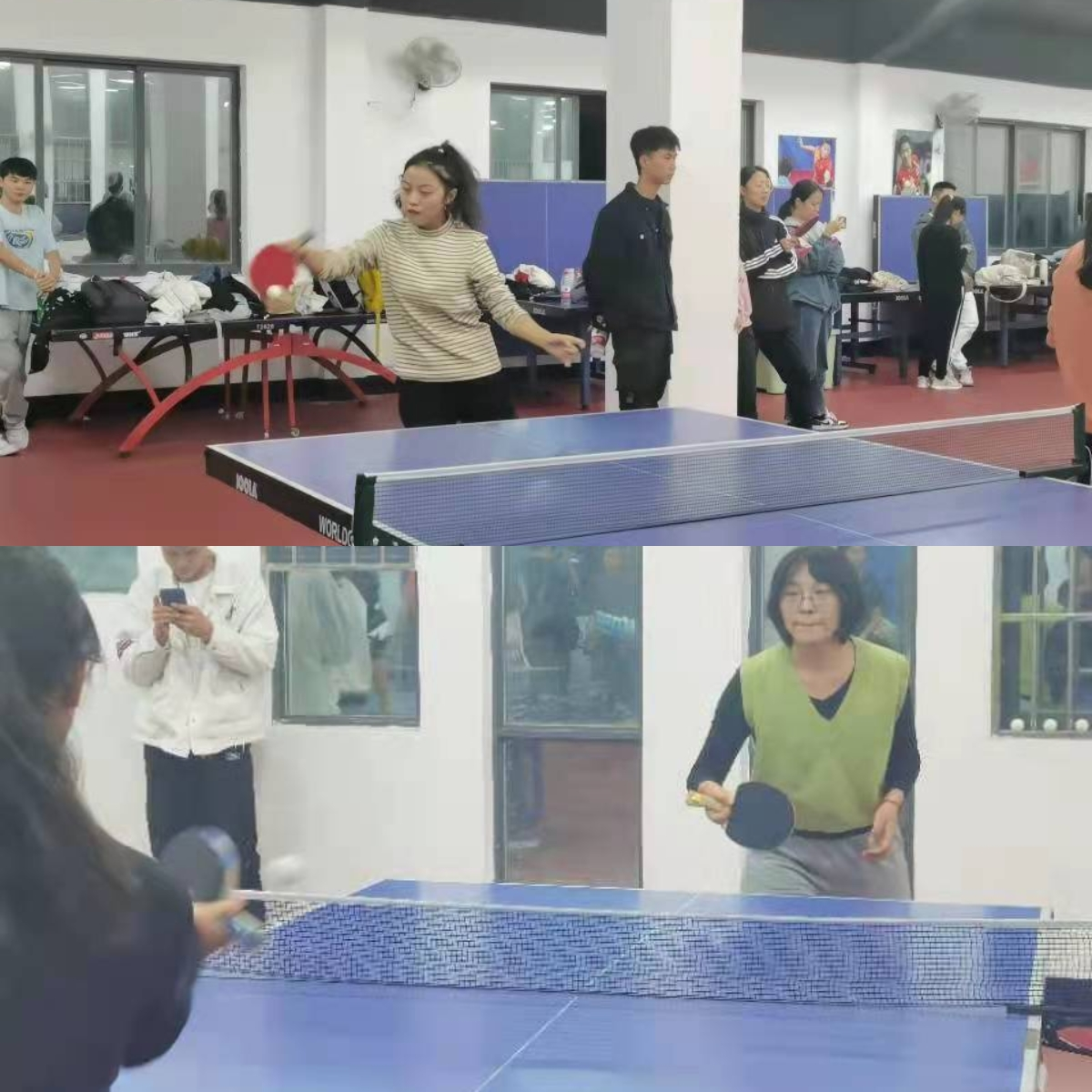 本次比赛设有男单和女单两个项目,采用三局两胜11分制、7进1晋级赛。在比赛过程中,运动员们毫无保留,将自身的技术技巧全部发挥出来,争取胜利。他们积极拼搏、不轻言弃的精神感动了每一位观众,比赛中不时传来热烈的喝彩声。经过4个小时的激烈角逐,最终韩松良与周振航同学分别取得了四胜一负和三胜三负的成绩,杨澜与侯霞同学均以零胜五负的成绩遗憾告终。