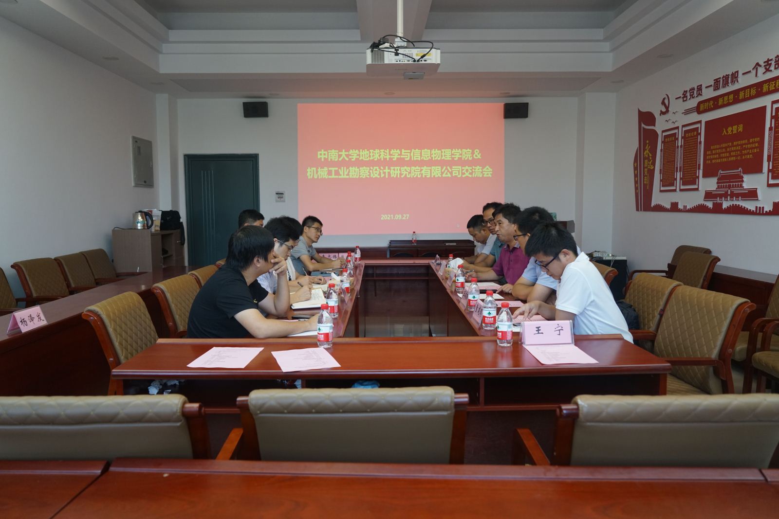与机械工业勘察设计研究院有限公司交流会于地球科学大楼216会议室顺利举行。出席此次会议的领导有机械工业勘察设计研究院有限公司党委副书记、总经理杨永林,人力资源部副部长、党委干部部副部长刘哲强,测绘工程院副院长王双雨,综合管理部副部长彭卫超,测绘工程院童建鹏,以及欧飞