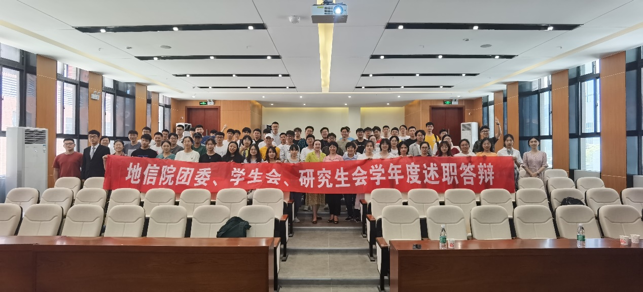 6月26日上午,地信院第十一届团委、学生会、研学会年度述职答辩于新校区地信楼报告厅举行。地信院党委副书记李建军、地信院研究生会指导老师田可、地信院团委书记刘琦出席本次活动。大会由地信院分团委学生副书记李易璋同学主持,地信院第十一届团委、学生会、研究生会全体成员参会。