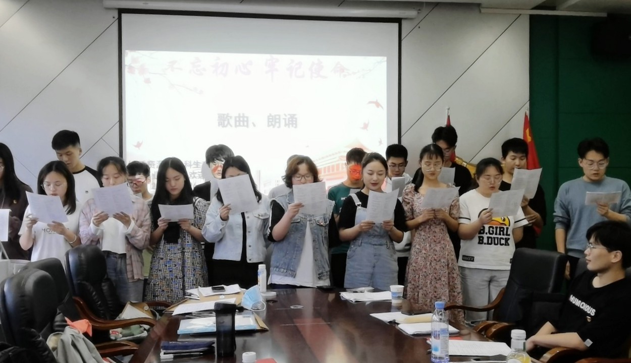 会议最后一项,覃毅学同志带领全体与会党员向党旗宣誓,重温入党誓词。最后,在国际歌的歌声中,地信院地质资源系本科生支部2021届毕业生党员欢送会落下帷幕。