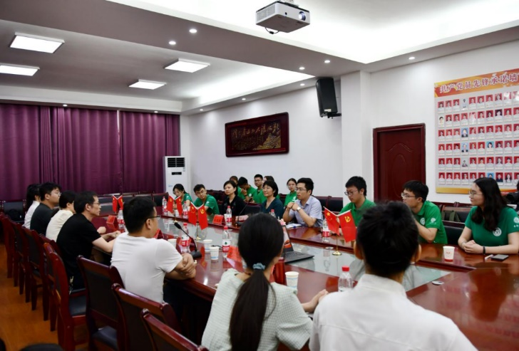 在参观完纪念馆后,李建军书记、邹滨院长、胡幽老师和部分党团员代表前往一师范东方红校区继续进行深一步地交流学习。刘军老师提出此次交流会是一次轻松愉悦的交流会,会议目的是让两个学校的党员团员在“学党史,悟新知”的良好活动氛围中互相交流学习经验,有所收获。张志新书记描绘了教科院接下来的发展蓝图和目标,邹滨副院长和李建军书记也对欧飞