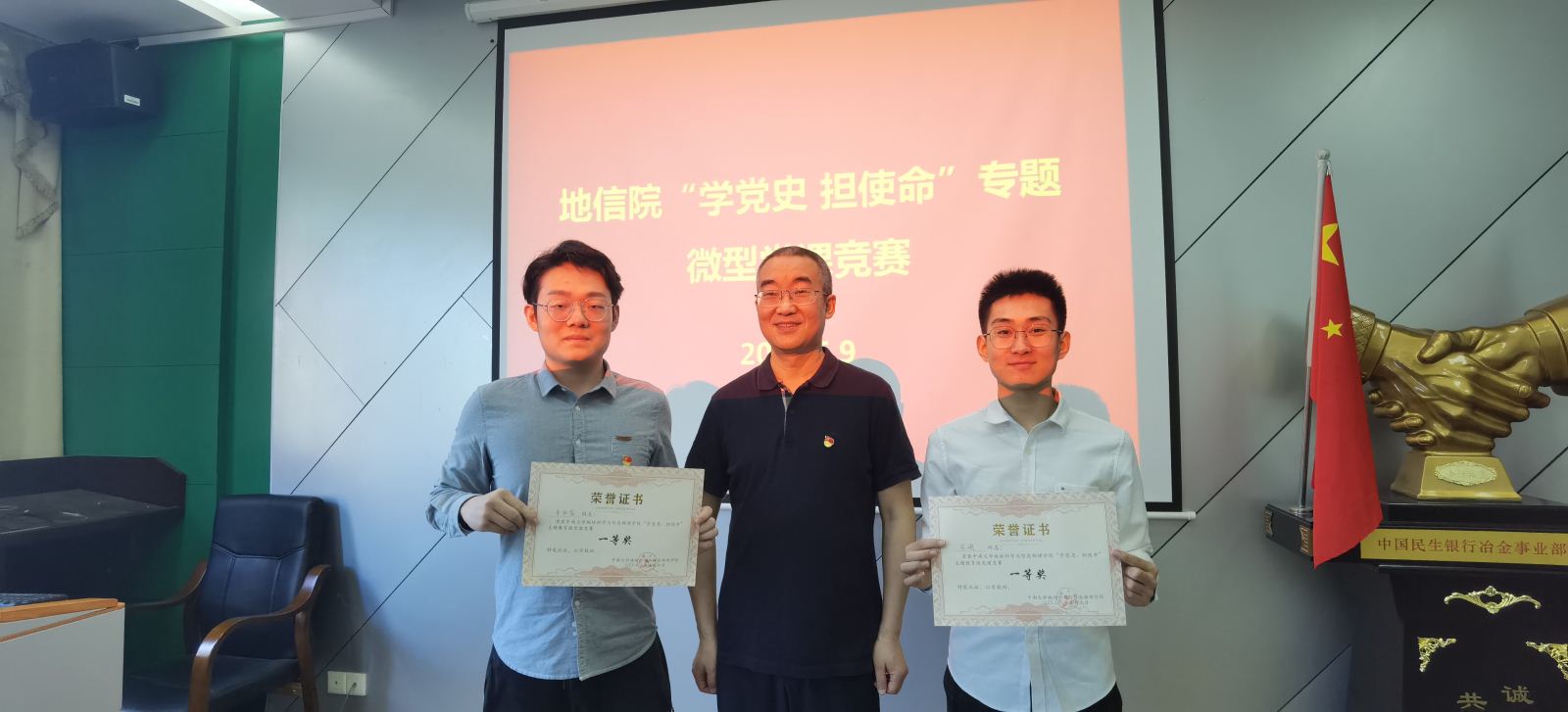 开展党史学习教育的实施方案》相关安排,地信院党委针对全院学院教工、学生党支部,于5月9日上午在校本部地学楼开展了“学党史 担使命”理论宣讲专题微型党课竞赛(决赛)活动。出席本次竞赛活动的有院党委书记邵拥军、院党委副书记兼关工委主任李建军、院关工委常务副主任胡祥昭、院关工委委员匡华凌、院研究生辅导员田可、院地质工程系硕士生支部书记刘飚、院团委书记刘琦。竞赛由地质资源系本科生党支部杨晨雨主持,来自学院各个党支部的党员代表现场观赛。