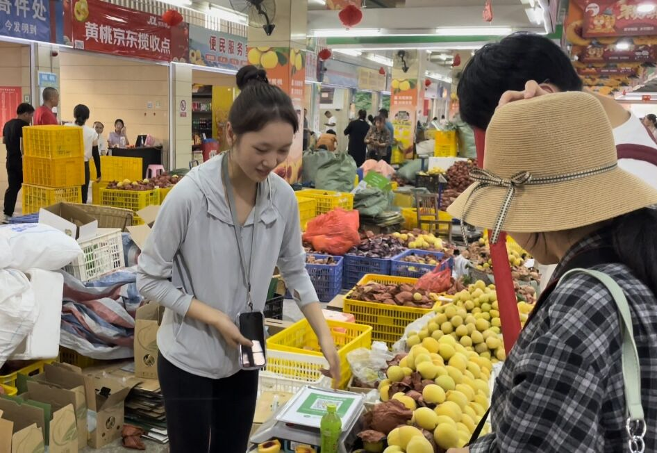随后,团队成员一同来到县内两家大型黄桃市场,通过观察、询问、品尝等方式对今年黄桃产量、品质等内外品质进行了解。