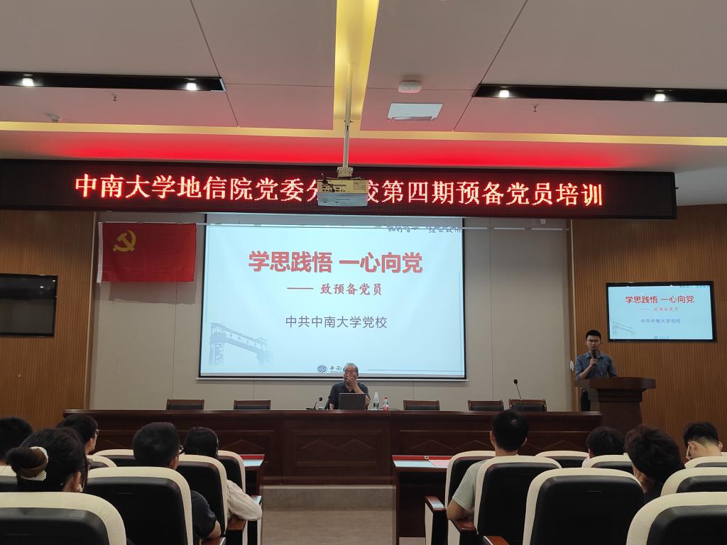 为深入开展学习贯彻习近平新时代中国特色社会主义思想主题教育,进一步加强对预备党员的教育培训,6月7日下午,地信院党委分党校第四期预备党员培训在地科楼127举行。本次培训由杨晨雨老师主持,发展对象培训班班导师杨通田老师、党校唐建华教授以及全体预备党员参加。