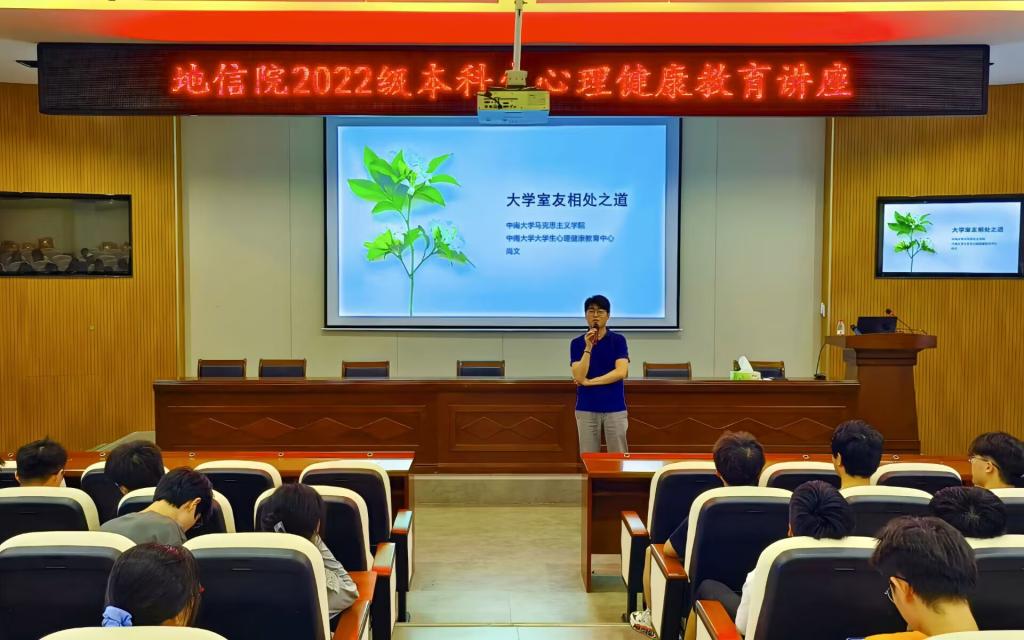 为更好帮助学生了解如何构建良好的人际关系,加强心理健康教育,7月6日下午,地信院“人际关系”专题心理健康教育讲座在地科楼127报告厅开展。此次讲座邀请了学工部心理健康教育中心尚文老师主讲,地信院2022级全体本科生参加。