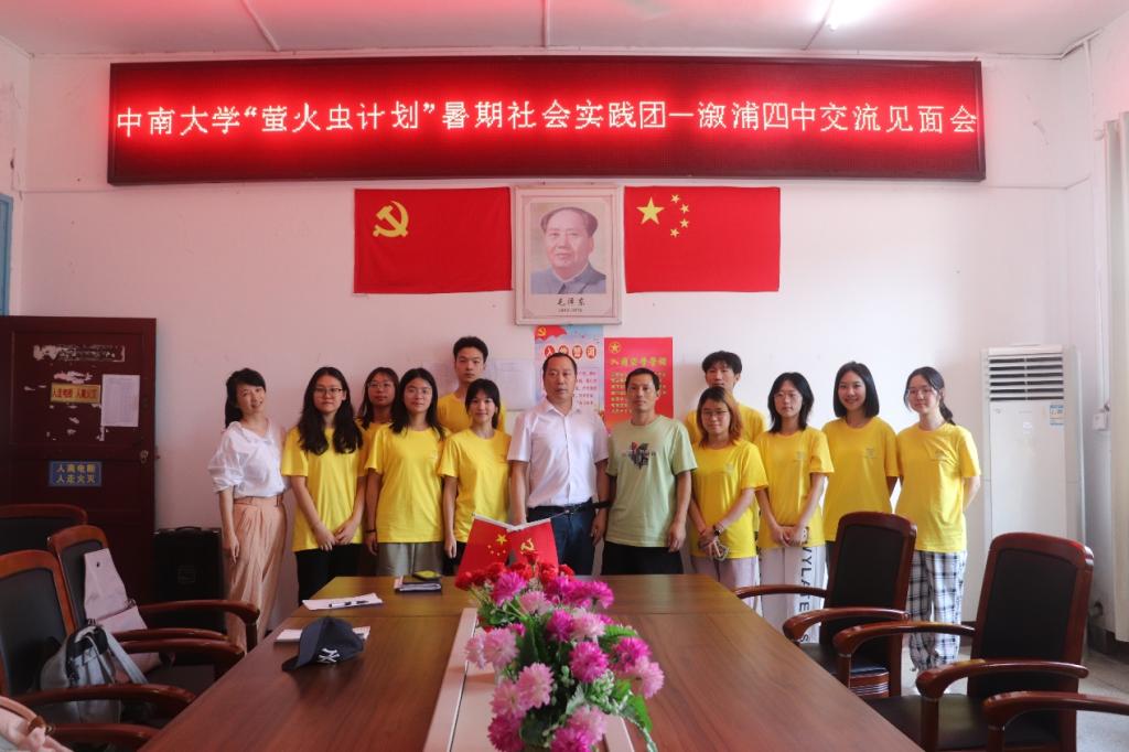 “萤火虫”计划实践团成员与溆浦四中李校长、黄校长合影)