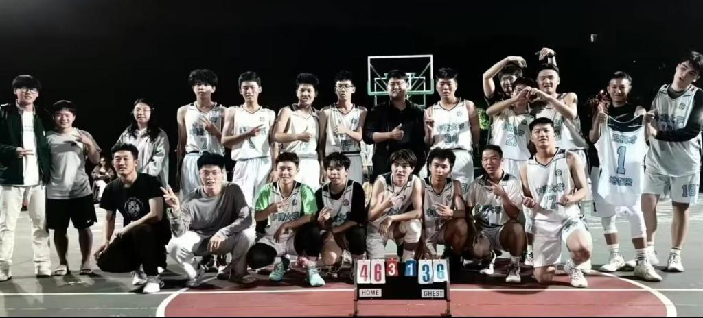 赛后,双方球员列队击掌以示敬意,与裁判握手致谢,共同合影留念。至此,地信院新生篮球队首战结束。地信院2023级辅导员赵乐到场参与,为队员加油鼓劲。期待地信院新生篮球队未来不断突破自我、再创佳绩。