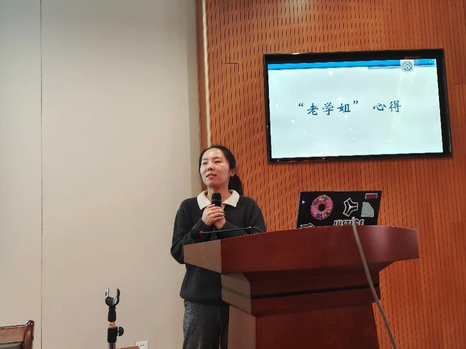 会议第二项,学生代表刘一骁、孙艳情、刘志鹏、孟璇从不同的角度进行经验分享。刘一骁同学介绍了自己大学以来的学习经验以及对于专业各学科的认识,同时向大家介绍了“本博计划”、“研究生推免”的申请流程,鼓励新生积极进取。孙艳情同学结合自己的情况,为新生讲解为什么要参加学生工作、怎样做好学生工作、学生工作的收获是什么,倡议大家结合自己的实际情况,选择合适的学生工作,积极投身实践。刘志鹏同学介绍了欧飞