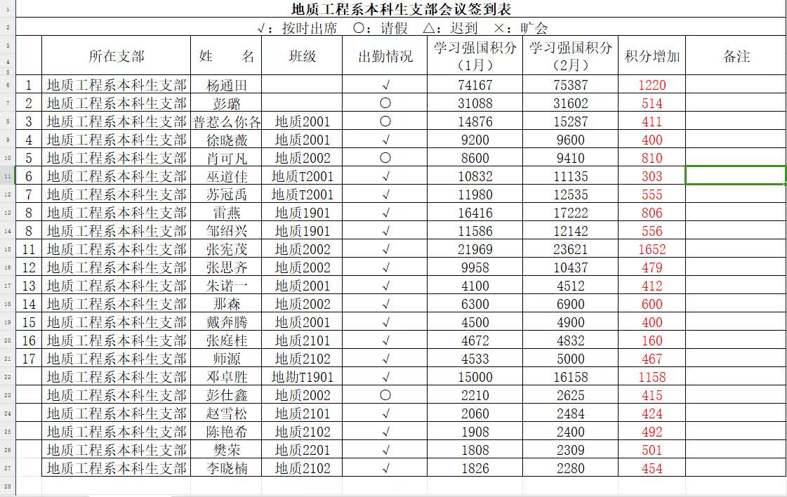 至此,本次地质工程系本科生支部二月集体学习暨2023年度民主评议党员会圆满结束。
