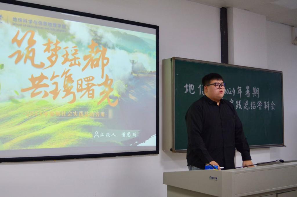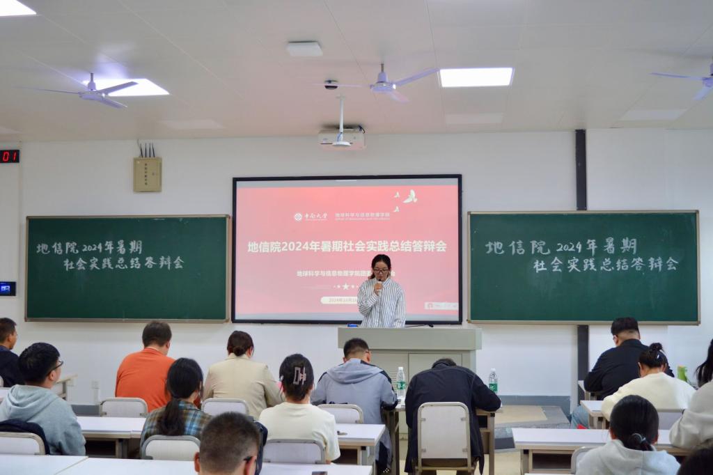 10月16日下午15:00,地信院2024年暑期社会实践总结答辩会于新校区A座214教室顺利开展。学院团委书记刘琦、第十四届学生会主席团及部长团成员任评委。本次答辩会由赵菁菁同学主持,地信院4支社会实践团队参与答辩,2022级和2023级本科生代表到场学习。