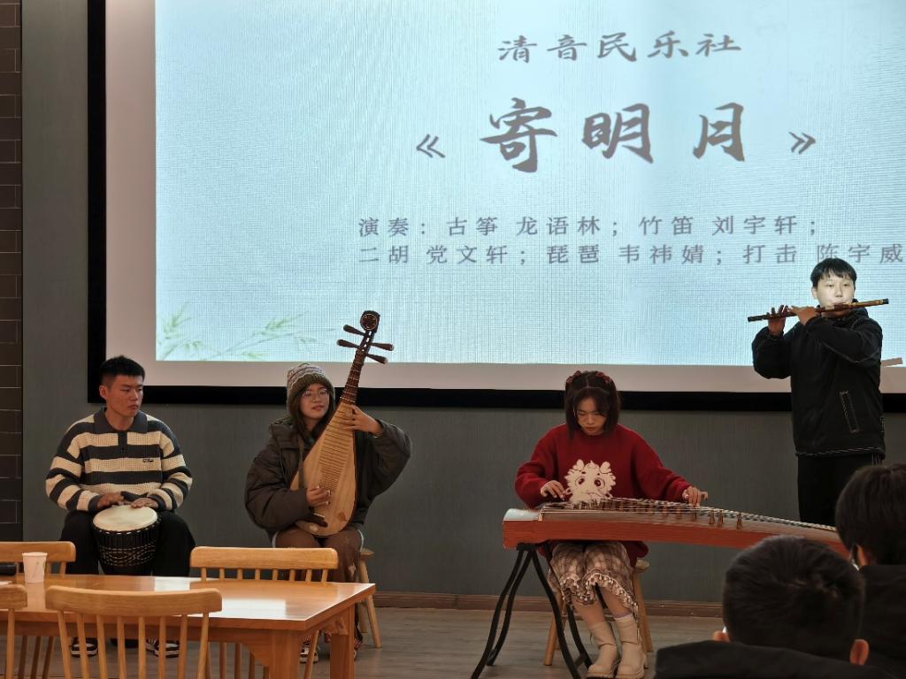2024年12月14日晚,清音民乐社、橘子口琴社、猗兰古琴社的同学们齐聚在欧飞