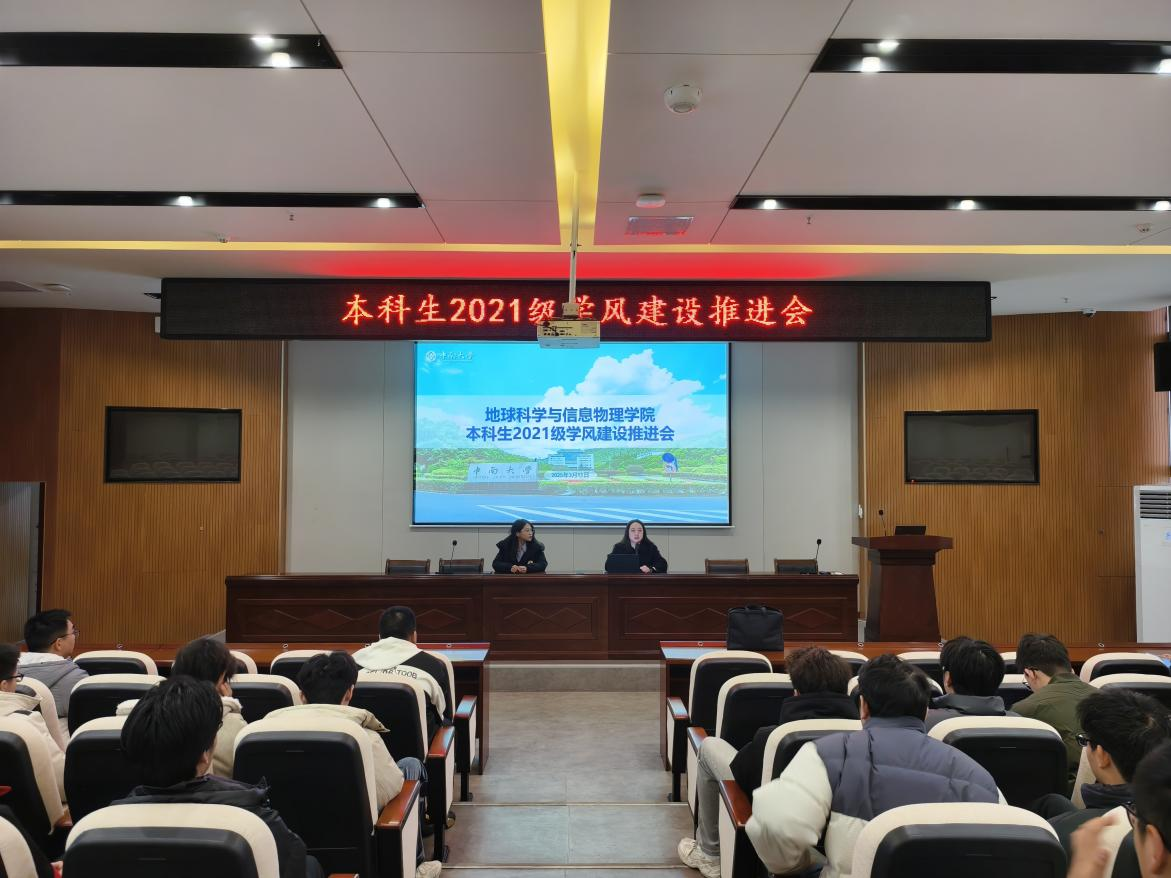 3月11日下午,地信院本科生2021级学风建设推进会于地科楼127顺利召开。年级辅导员刘琦、张馨心及全体2021级课程未通过学生参加会议,本次会议由刘琦老师主持。