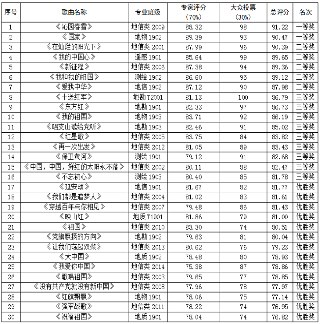 地信院“全心向党,红歌嘹亮”网络视听短视频大赛名次公示